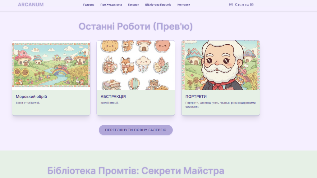 - Персональне портфоліо AI-художника.