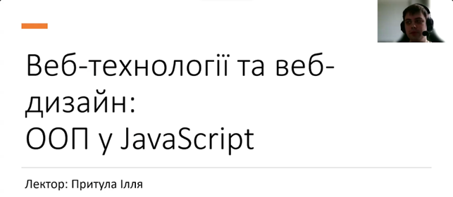 24 березня 2026 року фахівець-практик ІТ галузі, ФОП Ілля ПРИТУЛА провів відкриту лекцію в онлайн-форматі для бакалаврів 3 курсу освітньої програми “Інформаційні технології проектування” в рамках дисципліни “Web-технології та web-дизайн”. Тема лекції – “Об’єктно-орієнтоване програмування мовою JavaScript”. На лекції були також присутні лектор потоку, професор кафедри ІТ Віра ШЕНДРИК та викладачі кафедри ІТ доцент Юлія ПАРФЕНЕНКО, професор Сергій ТИМЧУК.