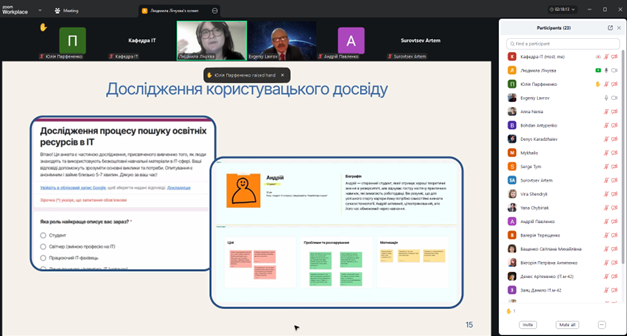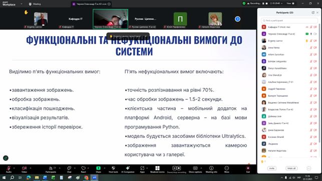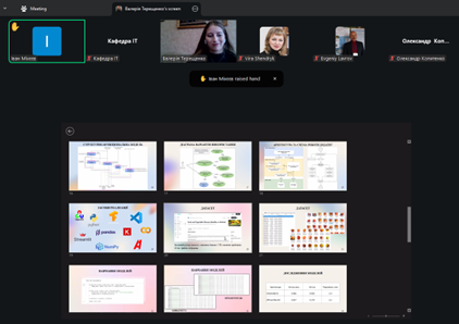 голови Михайла СИРОТЕНКА, керівника відділу автоматизованих систем керування виробництвом ТОВ «СМАРТ ІНДАСТРІ ГРУП», заступника голови екзаменаційної комісії,  завідувачки кафедри ІТ Анни НЕНІ,  та членів екзаменаційної комісії – гаранта освітньо-професійної програми, доцента кафедри ІТ  Юлія ПАРФЕНЕНКО, директора ТОВ «АПТІМАЙЗД ОПЕРЕЙШНЗ» Богдана АНТИПЕНКА, к.т.н., доцента, менеджера з розвитку талантів ТОВ «ЕПАМ СИСТЕМЗ» Івана МІХЄЄВА, професорів кафедри ІТ Євгенія ЛАВРОВА, Сергія ТИМЧУКА  та Віри ШЕНДРИК, доцентів кафедри ІТ  Світлани ВАЩЕНКО, Ірини БАРАНОВОЇ, Наталії ФЕДОТОВОЇ  протягом трьох днів онлайн засідань заслухала 22 кваліфікаційні роботи магістра.