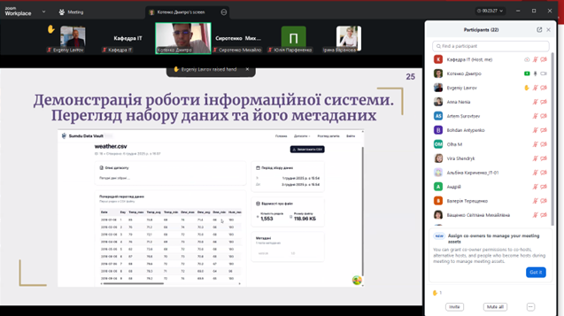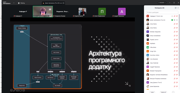 22-24 грудня 2025 року на кафедрі інформаційних технологій відбувся захист кваліфікаційних робіт магістрів здобувачів освітньо-професійної програми “Інформаційні технології проектування” спеціальності комп’ютерні науки.  Екзаменаційна комісія №21 у складі
